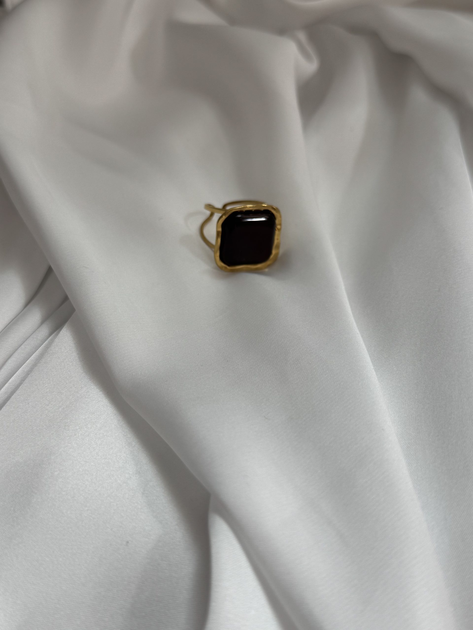Aτσάλινο χρυσό δαχτυλίδι με καφέ πέτρα και αυξομείωση