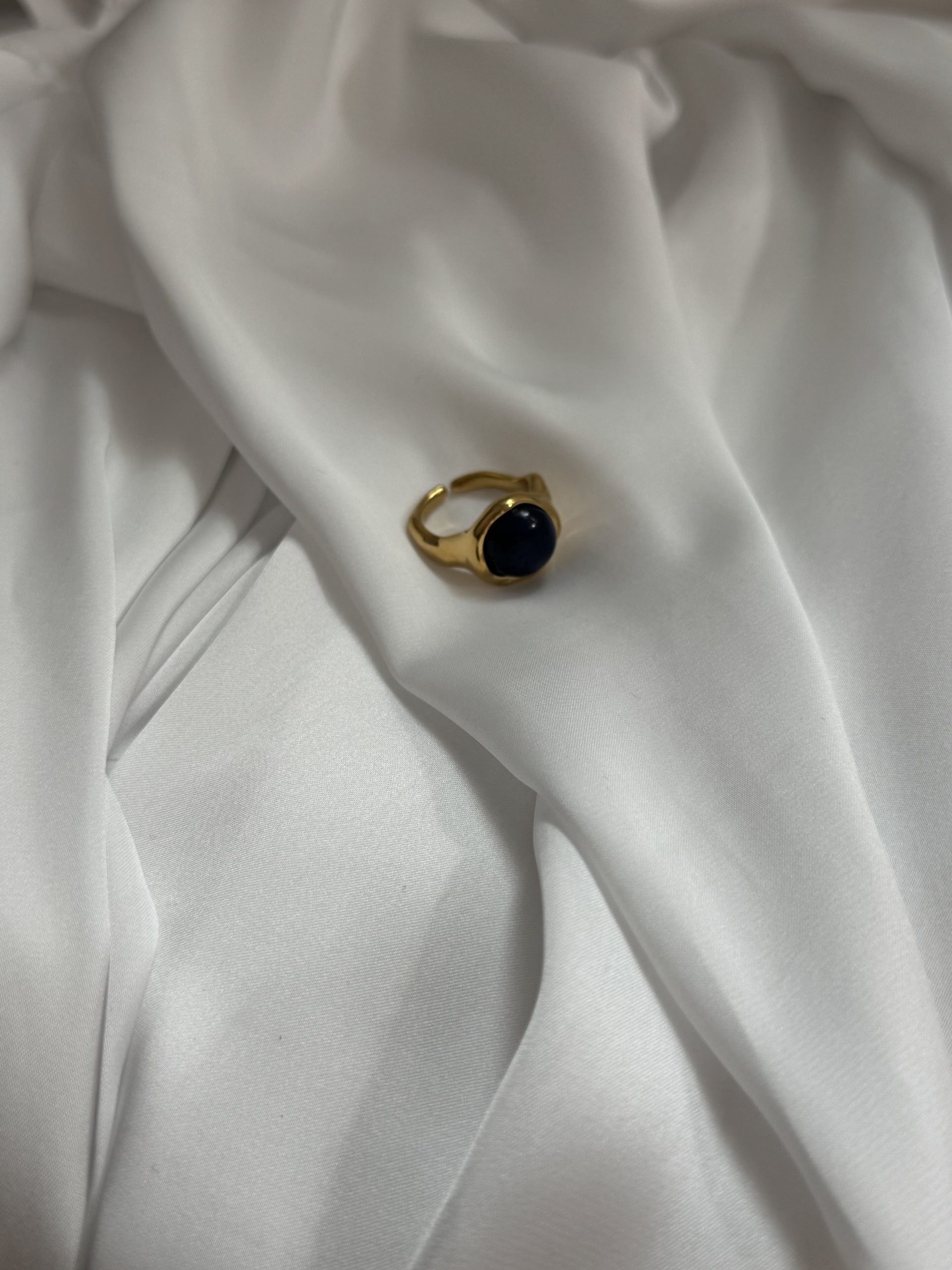 Aτσάλινο χρυσό δαχτυλίδι με μπλε πέτρα και αυξομείωση