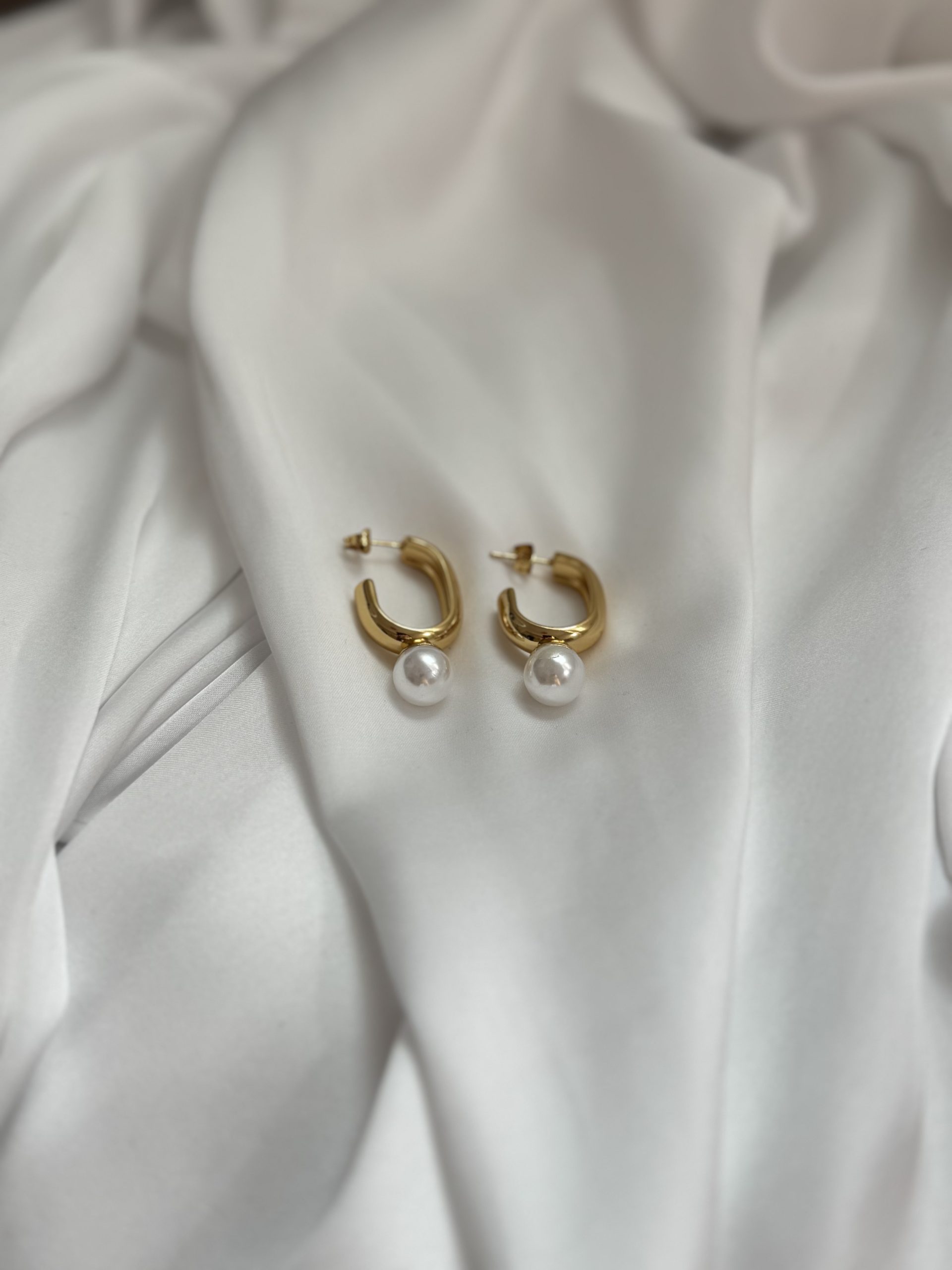 Aτσάλινο χρυσό σκουλαρίκι με πέρλα