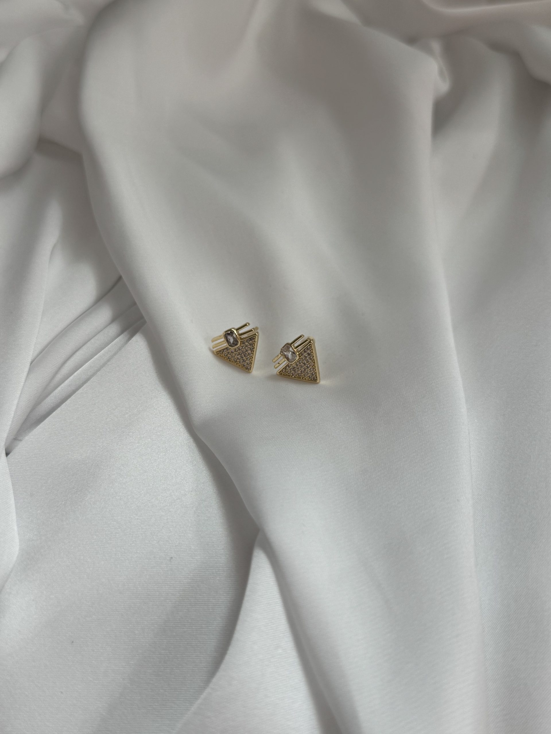 Aτσάλινο χρυσό σκουλαρίκι με ασημί ζιργκόν λεπτομέρειες