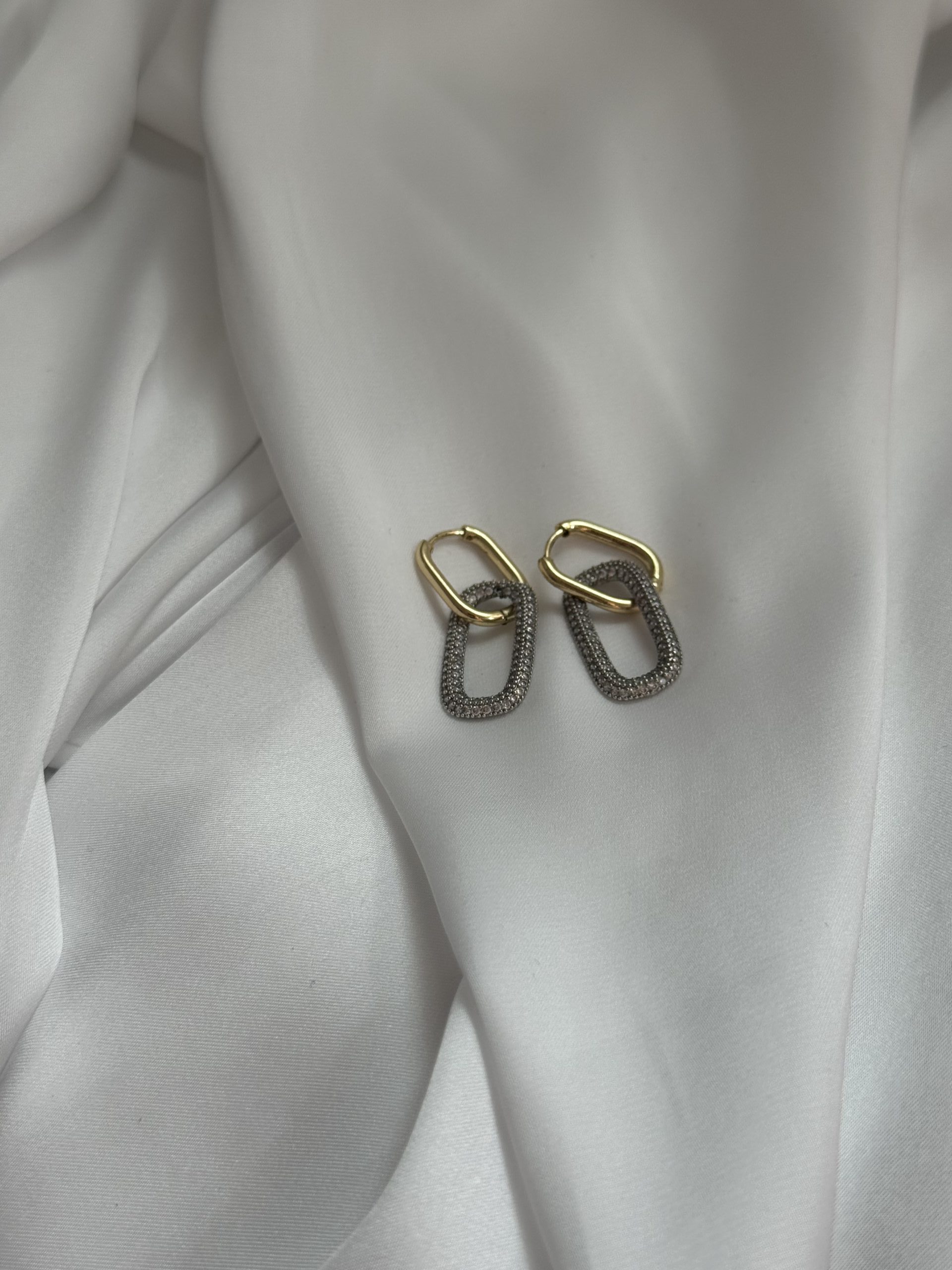 Aτσάλινο χρυσό κρικάκι με ζιργκόν λεπτομέρειες